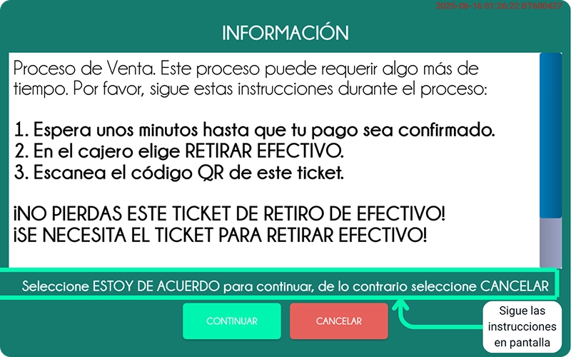 Resumen de instrucciones para iniciar venta